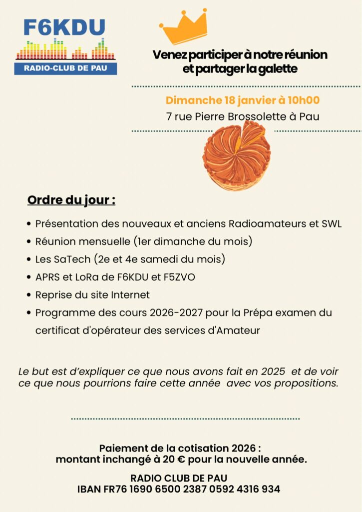 Le radioclub de Pau nous fait part de ses activités à venir au cours du mois de janvier :